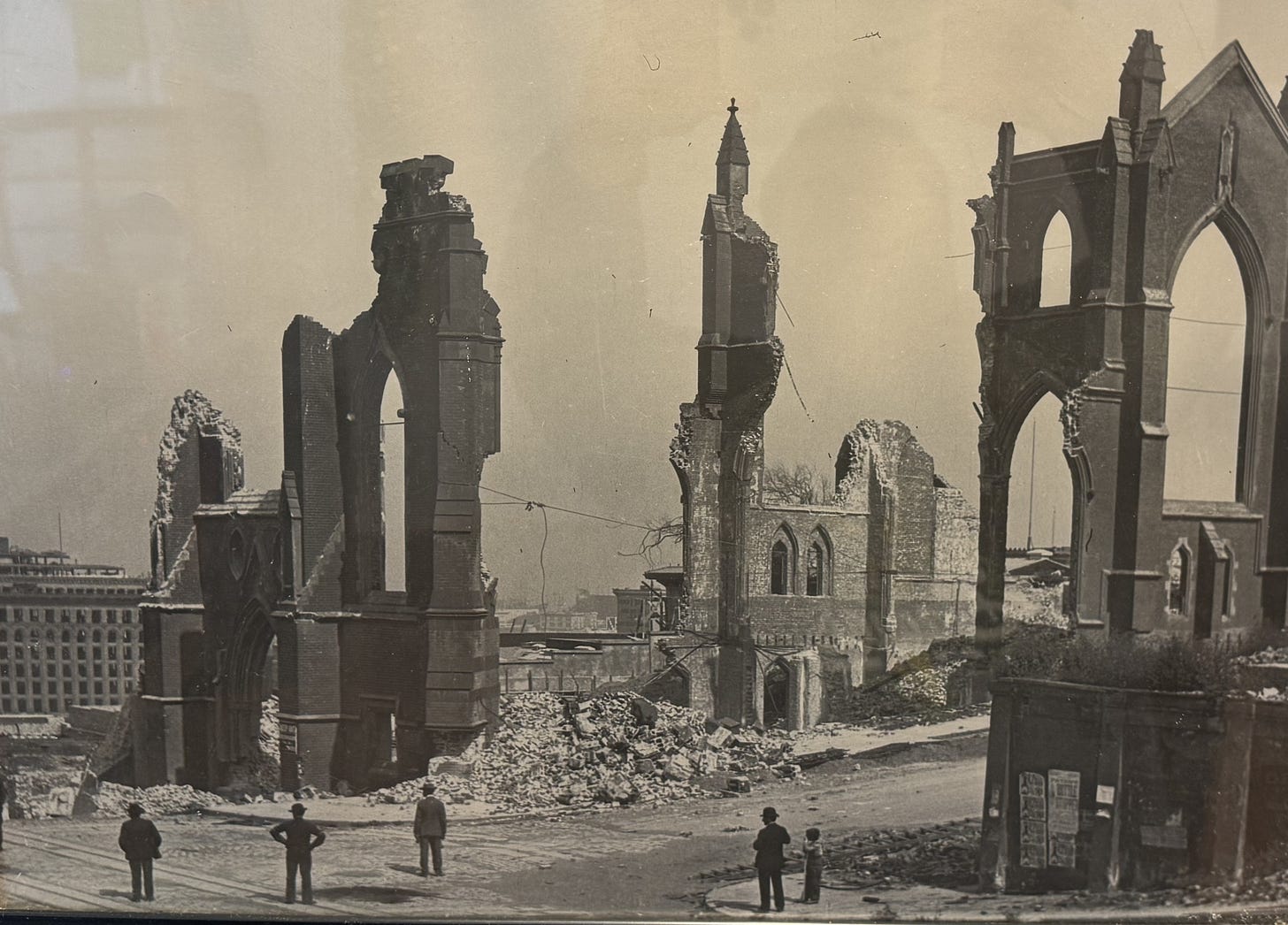 [photograph of a framed photograph entitled “1906” — courtesy of Brother’s Pizza on Taraval, where it hangs on the wall — photo of photo taken by John Crabtree]