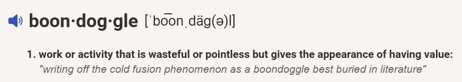 On February 18th I published this report — The Boondoggle Chronicles III. That essay focused on the word “wasteful” from the above definition for the word “boondoggle.”